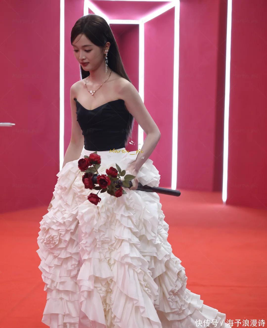 特别是她手里拿着一束鲜亮的大红玫瑰,再加上那造型,怎么看都像是在“村里办喜事,我去当伴娘”的场景,挺搞笑的。都说人靠打扮,马靠鞍,明星在红毯上的造型更是体现了他们的门面功夫。要说起来,吴宣仪最近的状态确实有点没那么顺。